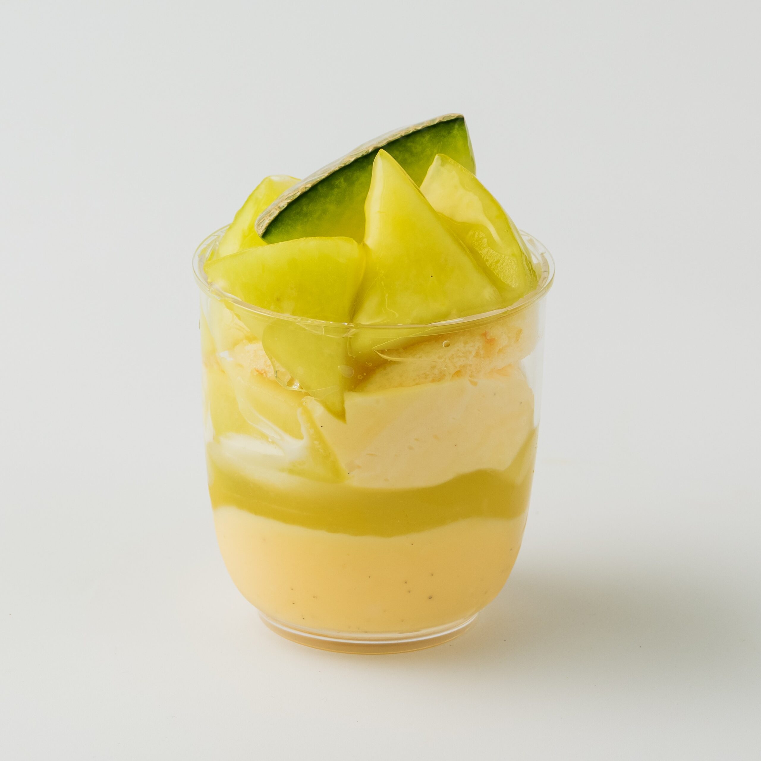 おうちでカフェ気分♪静岡産クラウンマスクメロンのテイクアウトパフェです。